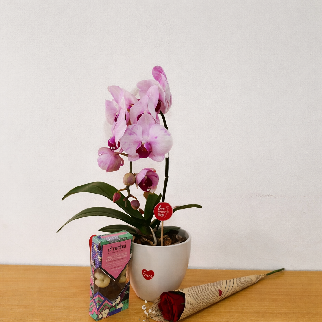 Celebrate love with this elegant Valentine combo featuring a beautiful Orchid Plant, known for its grace, luxury, and long-lasting blooms—just l... Read more