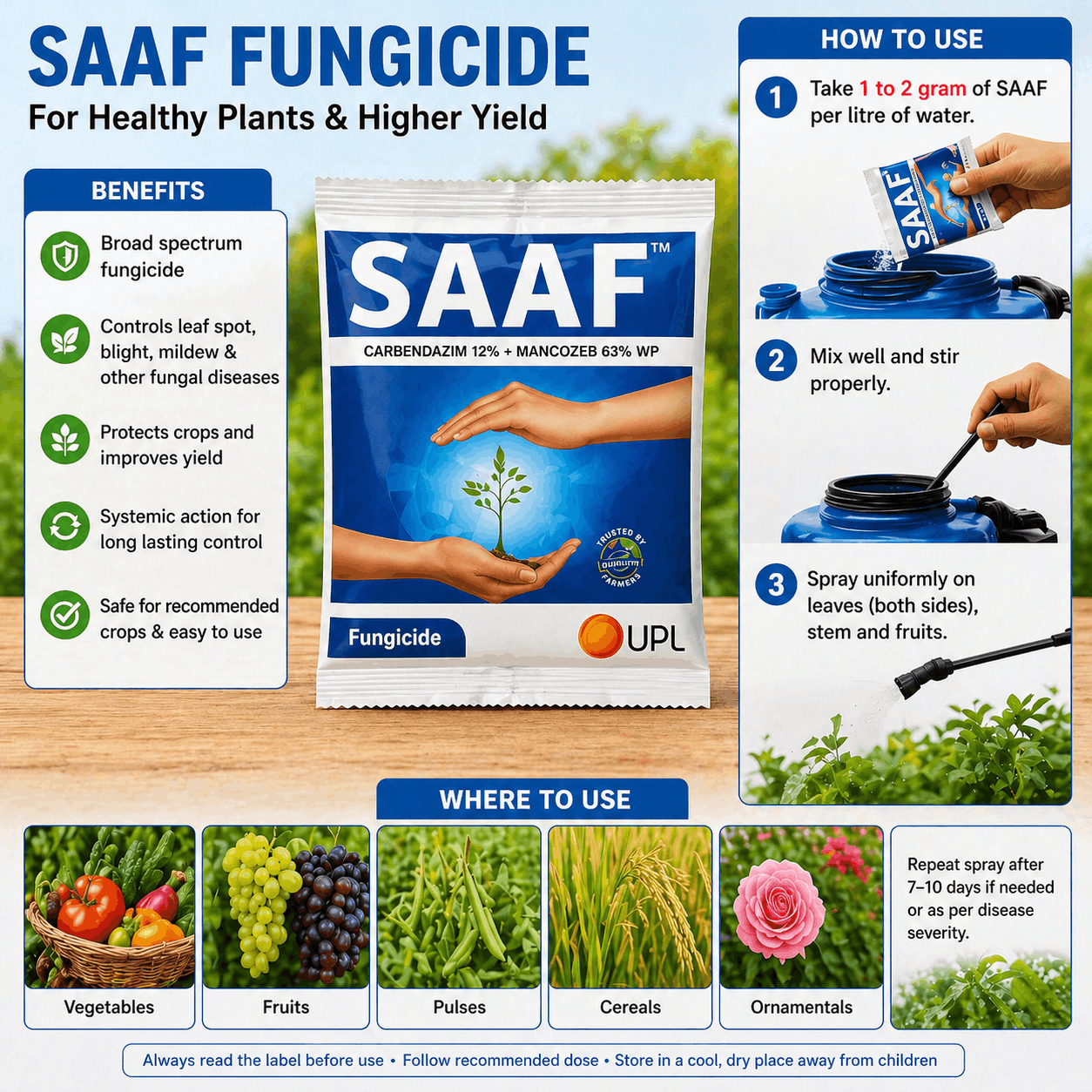 Saaf Fungicide is a systemic and contact fungicide