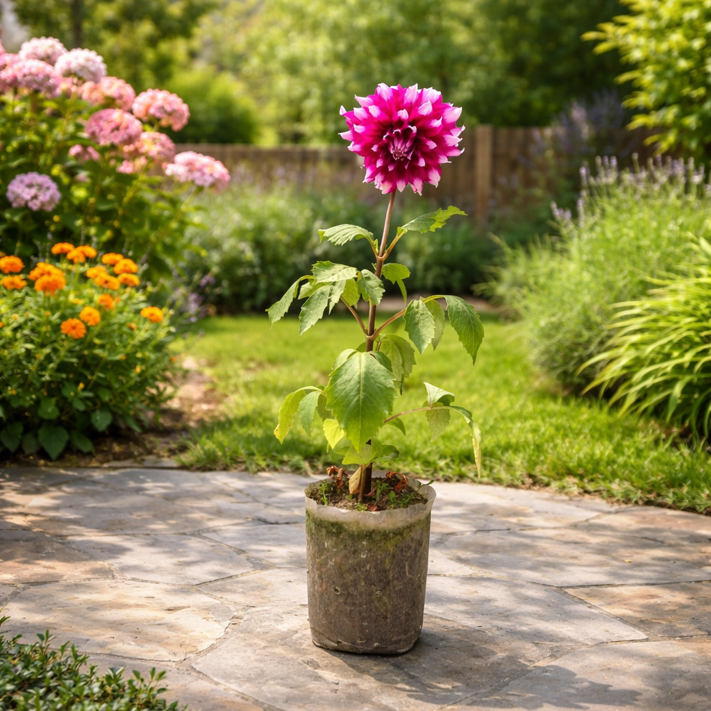 Dallia is vibrant with green leaves and blooms throughout the summer. Dwarf and compact in shape. Dallia attracts bees and butterflies.