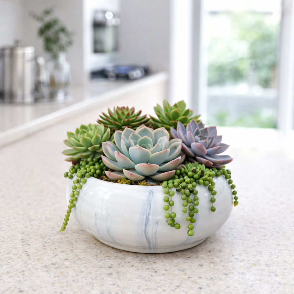 The Flat Round Pot offers a clean, low-profile design that fits perfectly on windowsills, desks, or coffee tables. These ceramic planters are specific... Read more