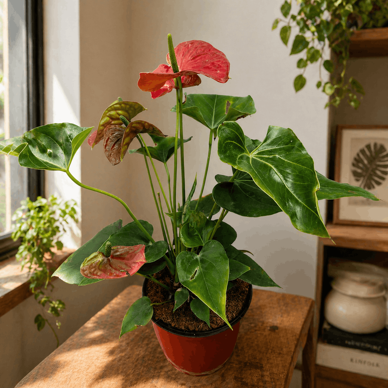 The Anthurium Diamond red is an indoor house plant characterized by its lush foliage and heart-shaped flowers. A head-turner, this plant can be a grea... Read more